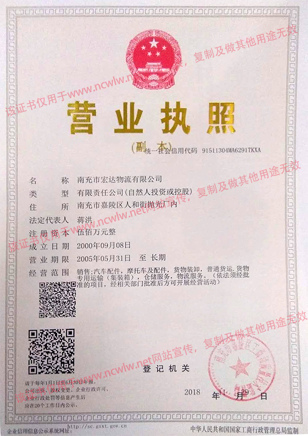 南充物流網(wǎng)(m.rzpcz.com) 南充市宏達(dá)物流有限公司營(yíng)業(yè)執(zhí)照